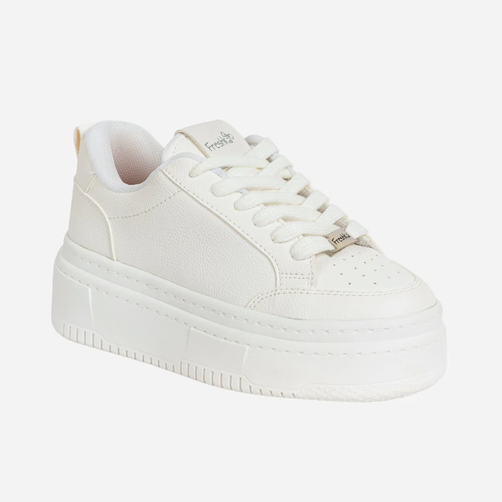 Descubre estas zapatillas blancas de mujer con plataforma, ideales para un estilo urbano y moderno. Cómodas y versátiles, perfectas para cualquier look casual, son un básico imprescindible en tu armario.