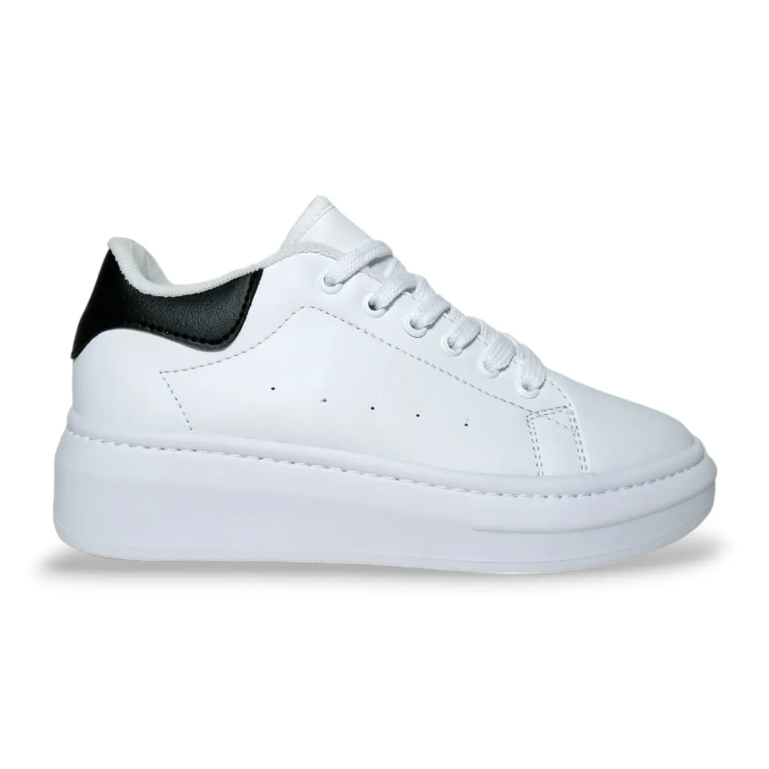 Zapatillas Urbanas Blancas con Plataforma y Detalle Negro