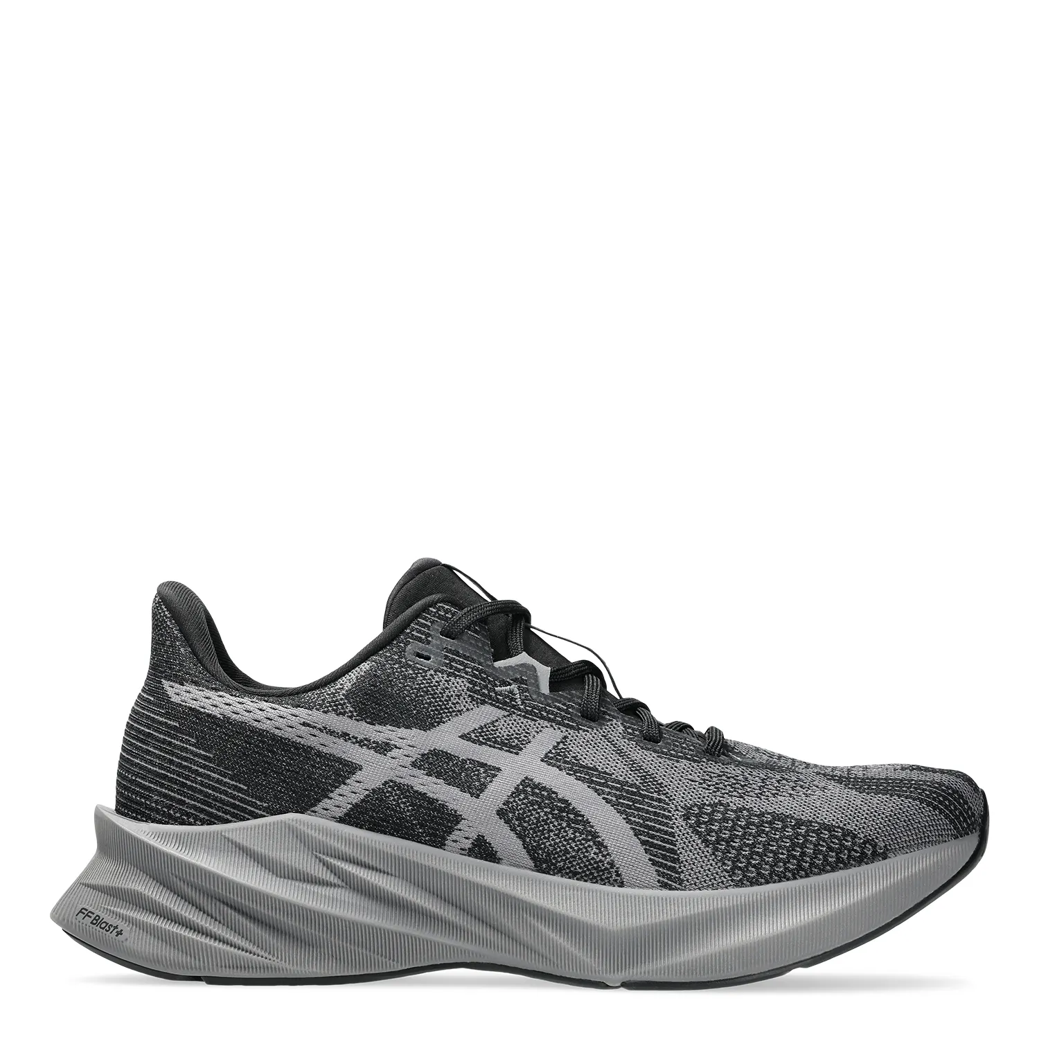 Zapatillas de running ASICS en tonos gris oscuro y claro, diseñadas para ofrecer amortiguación y soporte. Ideales para entrenamientos diarios y carreras, combinan estilo y funcionalidad para un rendimiento óptimo.
